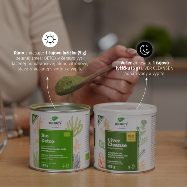 Večer zmiešajte 1 čajovú lyžičku (5 g) LIVER CLEANSE v pohári vody a vypite. Tým podporíte čistenie pečene cez noc a najlepšie využijete čas odpočinku.