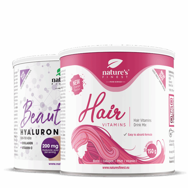 Beauty Hyaluron s 200mg kyseliny hyalurónovej v dennej dávke obohatenej o kolagén a vitamín C. Najlepšou alternatívou proti vypadávaniu vlasov je určite biotín.