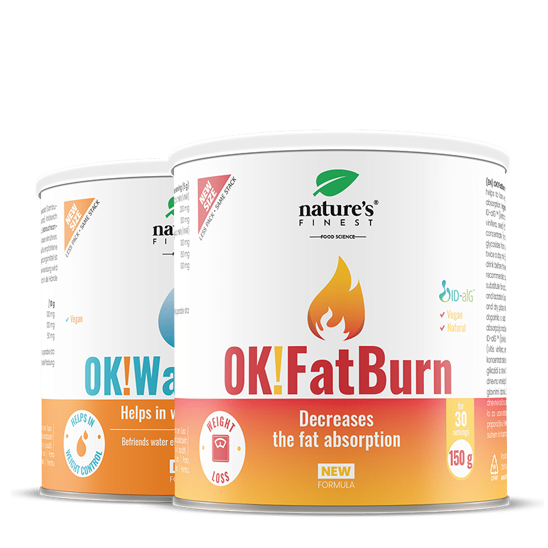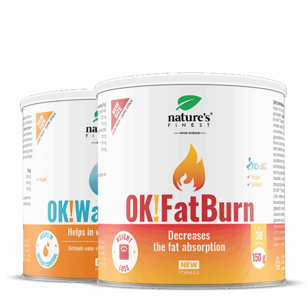 OK!FatBurn s účinnou látkou ID-alG ™ bolo klinicky dokázané, že pomáha strácať telesný tuk, OK!WaterOut urýchľuje vylučovanie prebytočnej vody z tela a pomáha odstraňovať nadbytočné kilá.