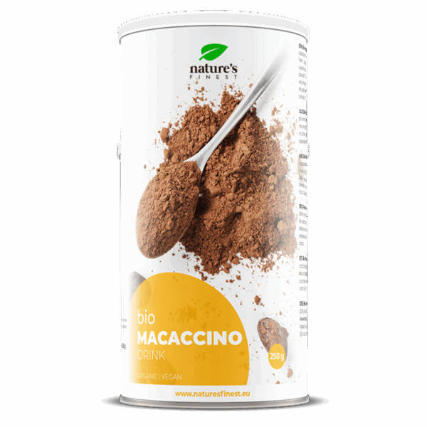 Macaccino je bohaté na bielkoviny a vlákninu. Zdroj železa, horčíka a mangánu.