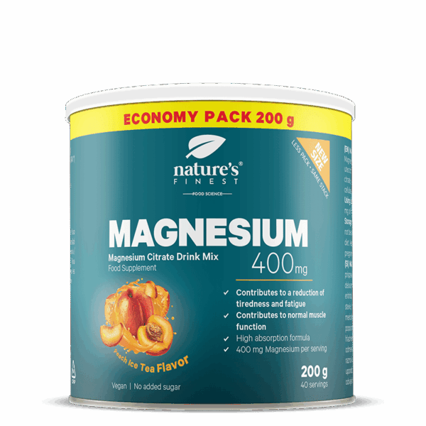 Magnesium 400 ekonomické balenie, 200 g – doplnok stravy so sladidlami.