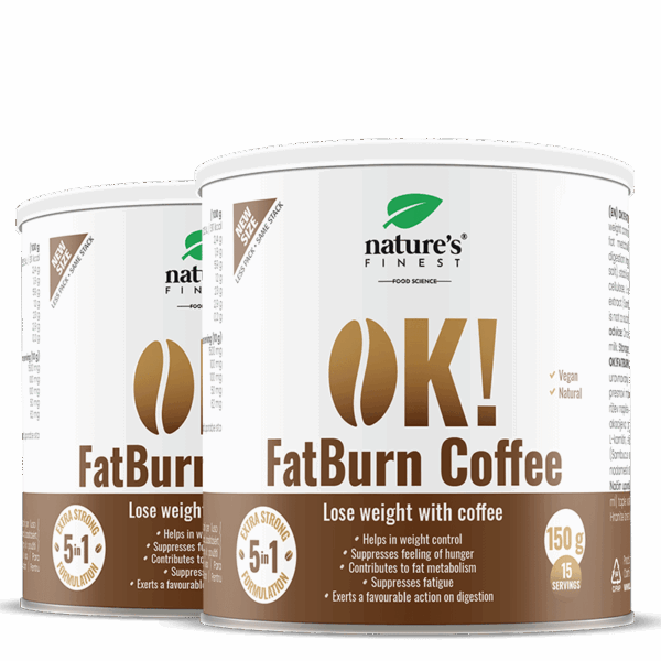 Zmiešajte 10 g (1 polievkovú lyžicu) zmesi OK!FatBurn Coffee v 150 ml teplej vody alebo (rastlinného) mlieka.